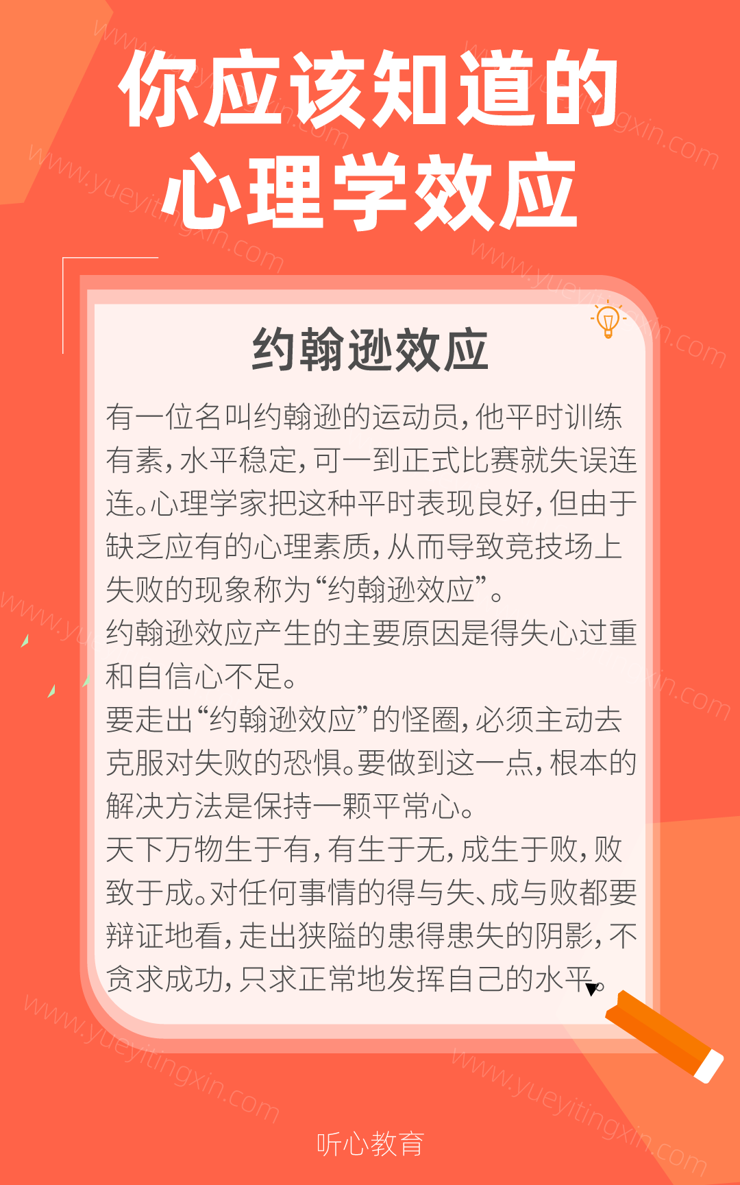 约翰逊效应产生的主要原因是得失心过重和自信心不足。